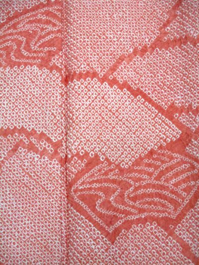 絞り訪問着サーモンピンク柄